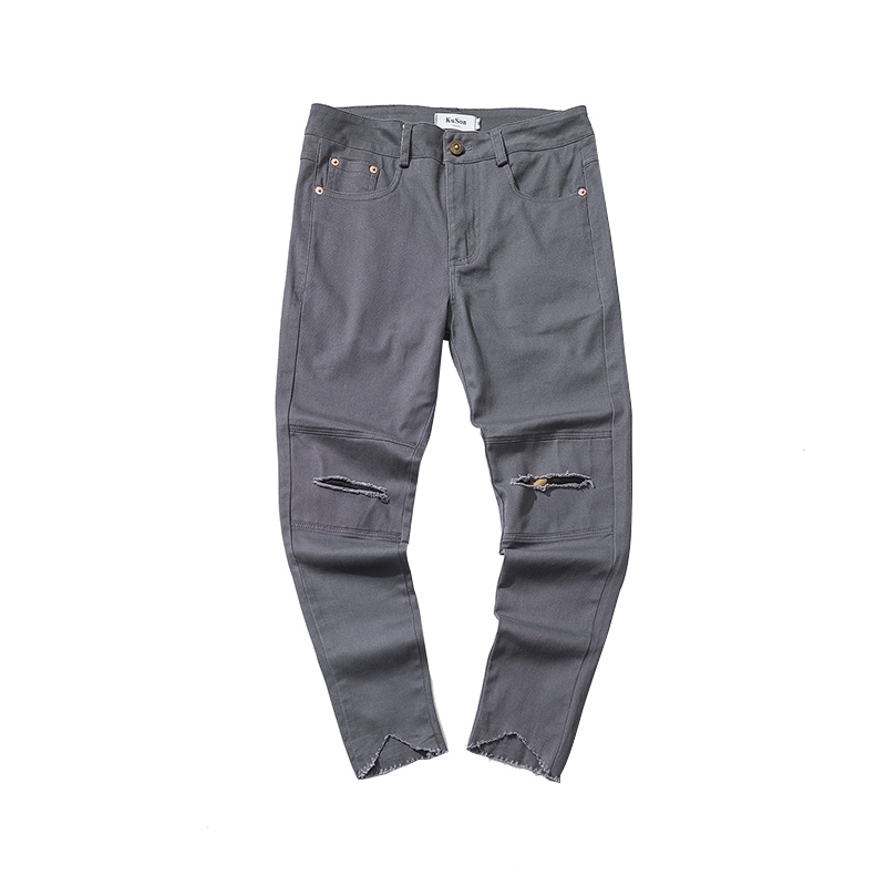 新款冬裝破洞迷彩補丁錐形小腳韓版休閑褲男士長褲