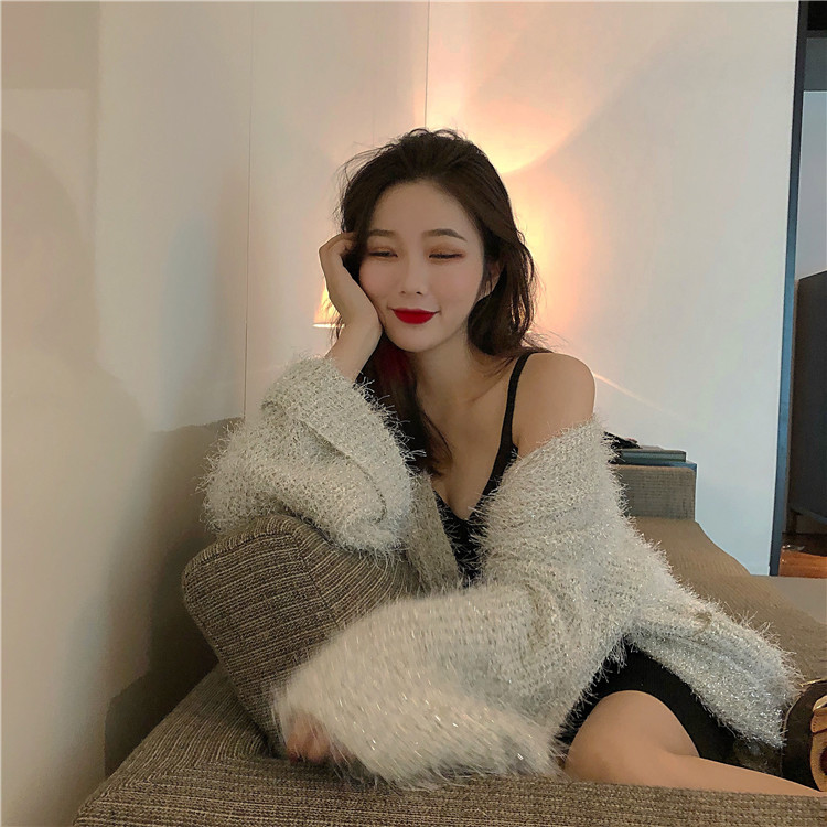 / 秋季慵懶風閃閃加厚毛衣外套女2018新款韓版寬松百搭針織開衫外搭