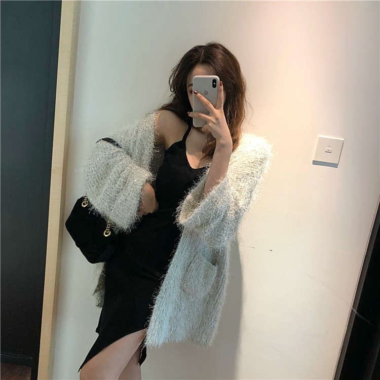 秋季慵懶風閃閃加厚毛衣外套女2018新款韓版寬松百搭針織開衫外搭