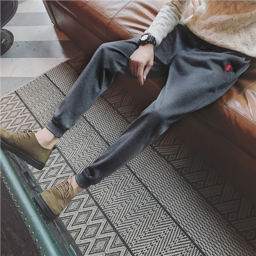 新款男裝韓版修身小直腳加絨加厚男士束腳運動褲
