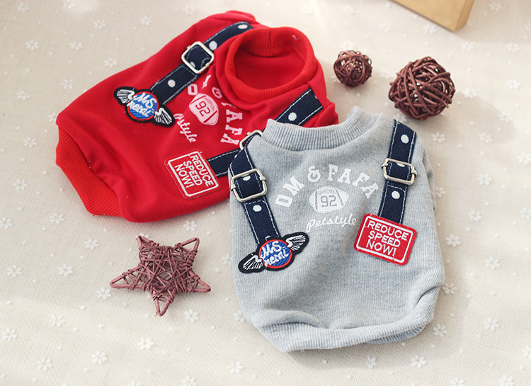 哈哈很帥氣啊~~假裝有背帶的樣子呀哈哈哈~家里有2只狗狗的搭配2件一起買啊超級可愛啊~~可以一起當做情侶裝搭配也可以當做姐弟裝啊哈哈哈哈!!!