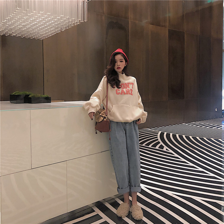 / 新款韓版時尚小清新字母印花chic秋冬女裝寬松長袖高領套頭衛衣潮