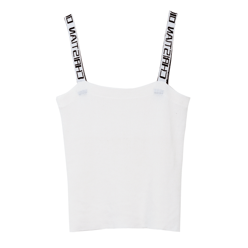 / 夏季新品女裝針織彈力性感吊帶背心裹胸白色字母肩帶百搭上衣