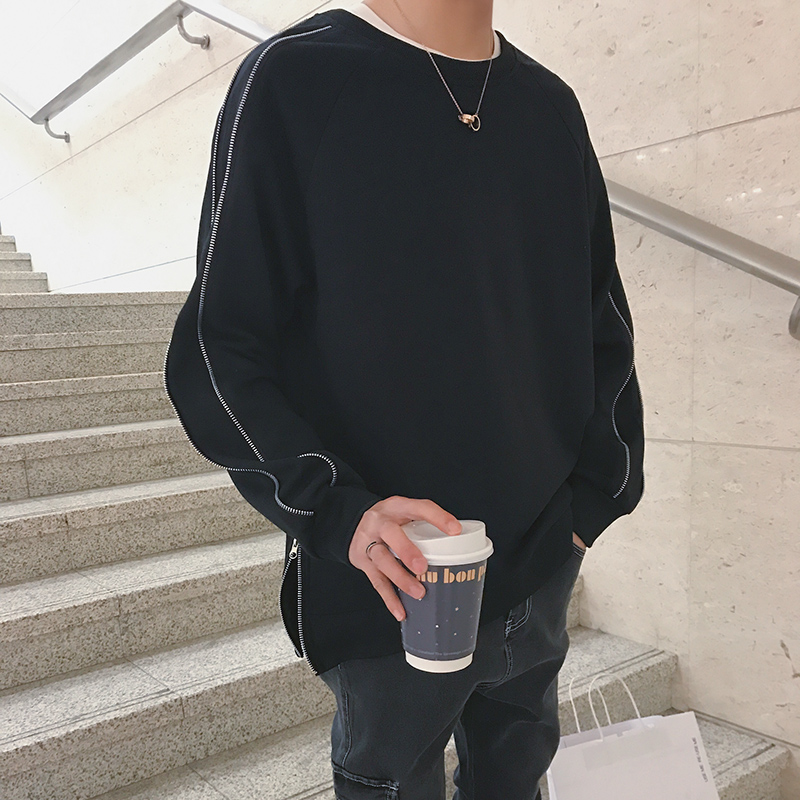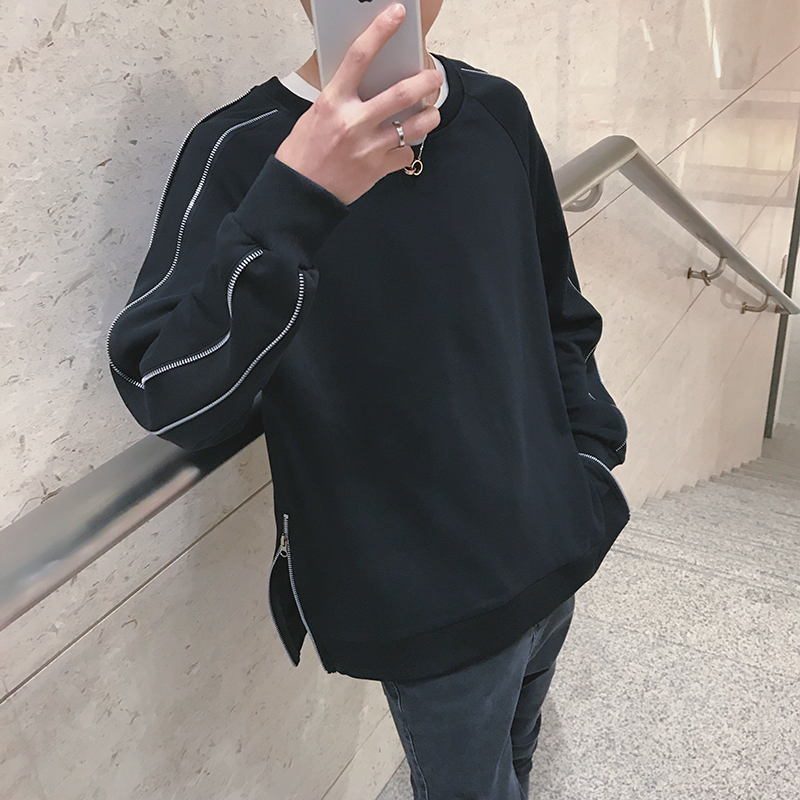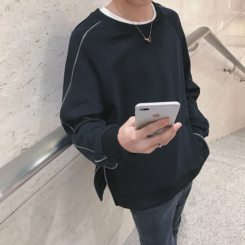 / 男裝韓版純色套頭衛衣側開叉圓領男士寬松衛衣外套
