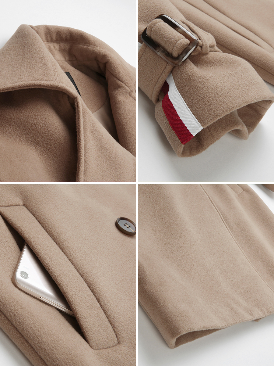 MG小象雙排扣毛呢外套女秋中長款韓版冬裝新款寬松學生卡其色大衣