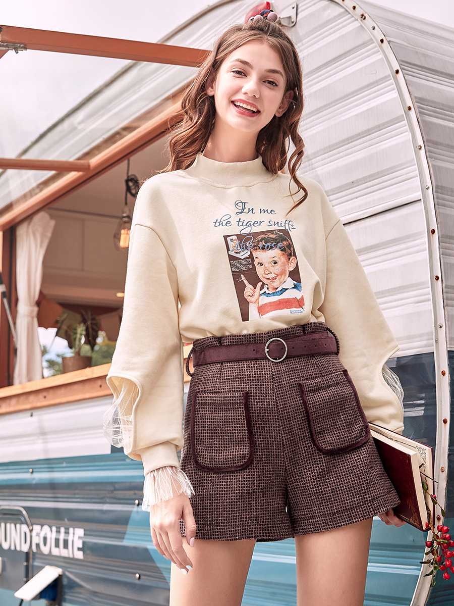MG小象高腰休閑短褲女秋冬新款格子直筒褲學生港風復古chic褲子潮