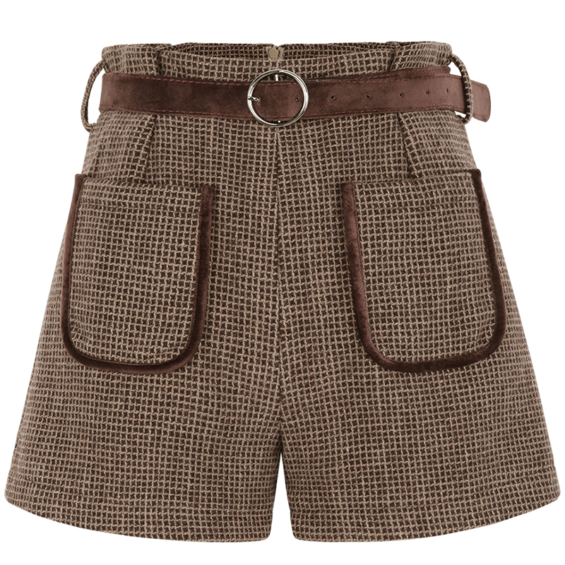 / MG小象高腰休閑短褲女秋冬新款格子直筒褲學生港風復古chic褲子潮
