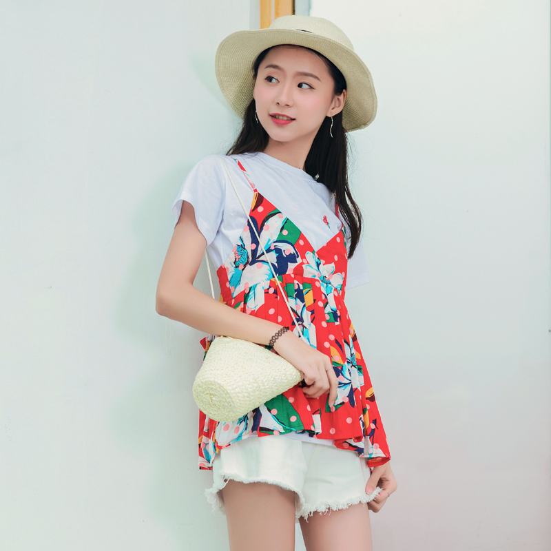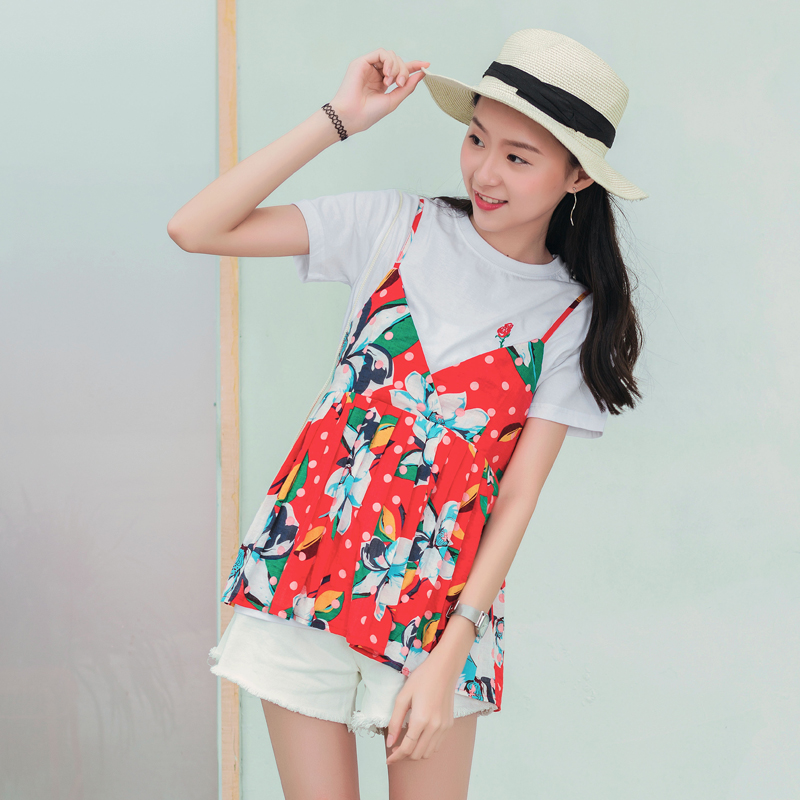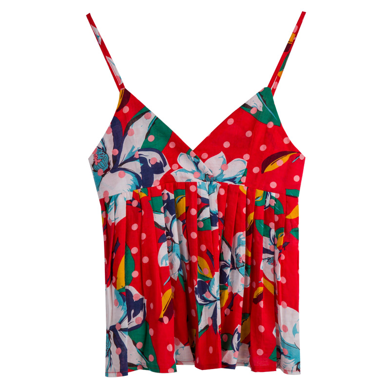 炒雞好看的一款印花吊帶,吊帶全身都是俏麗清新的花朵,復古又不失時尚