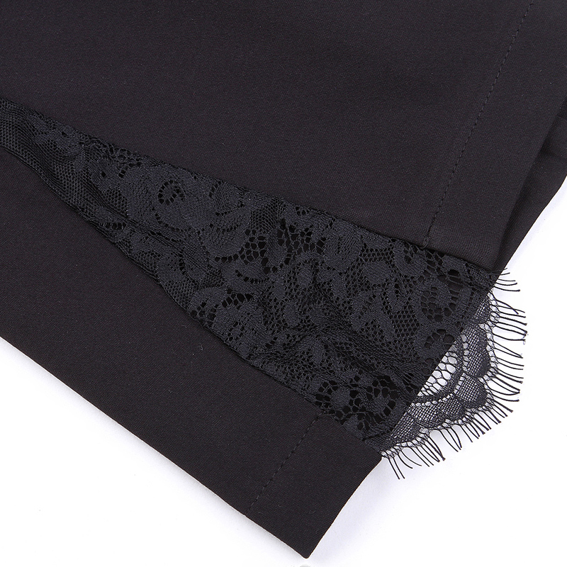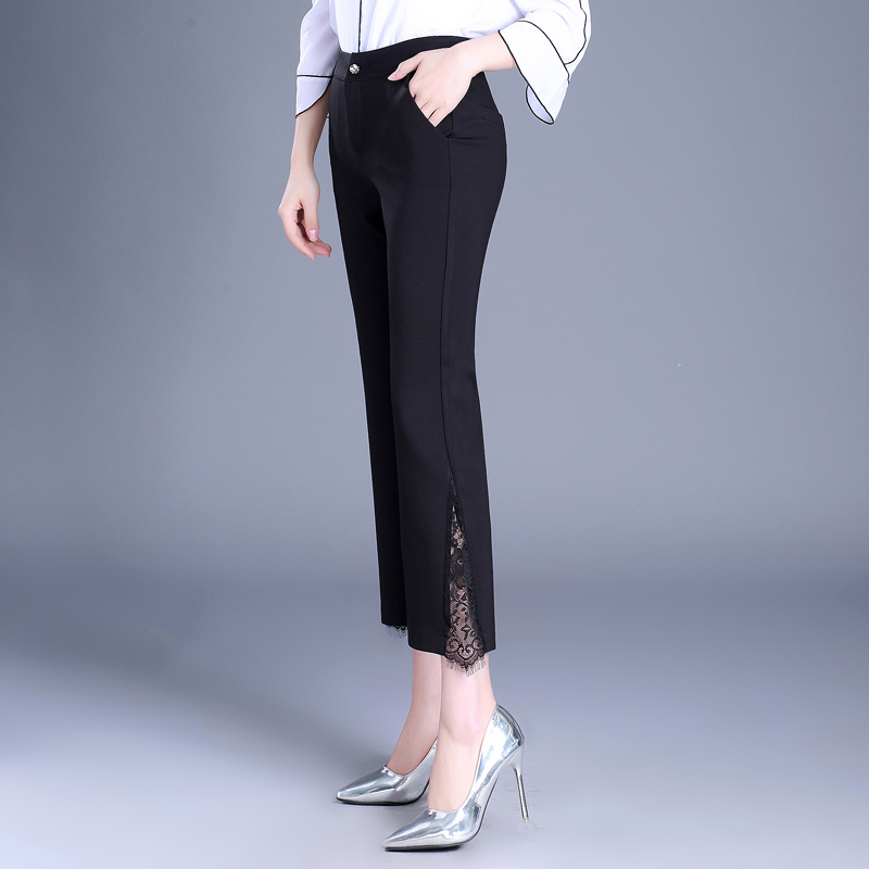 薄款開衩雪紡闊腿褲女夏季拼接蕾絲寬腿褲松緊腰純色側開叉九分褲