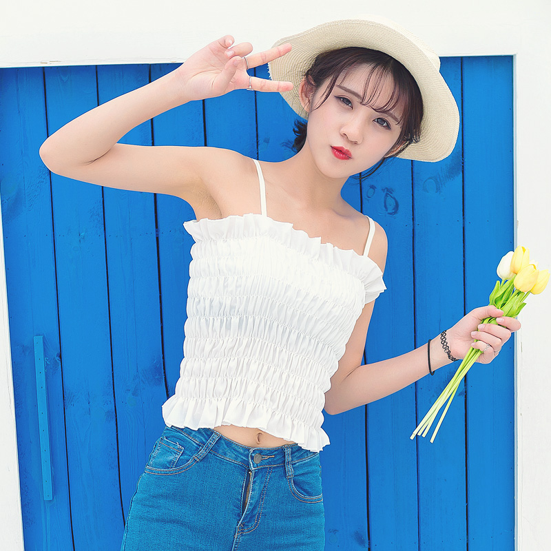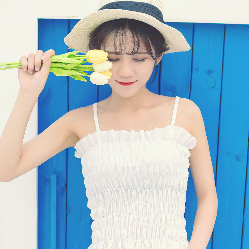 甜美背心款,褶皺設計的哦,裹胸彈力是比較大的呢