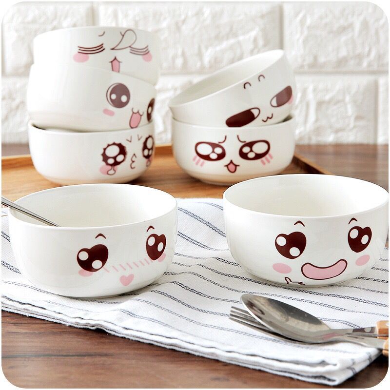 / 廚房創意可愛卡通表情包陶瓷碗家用米飯湯碗吃飯學生泡面碗情侶碗