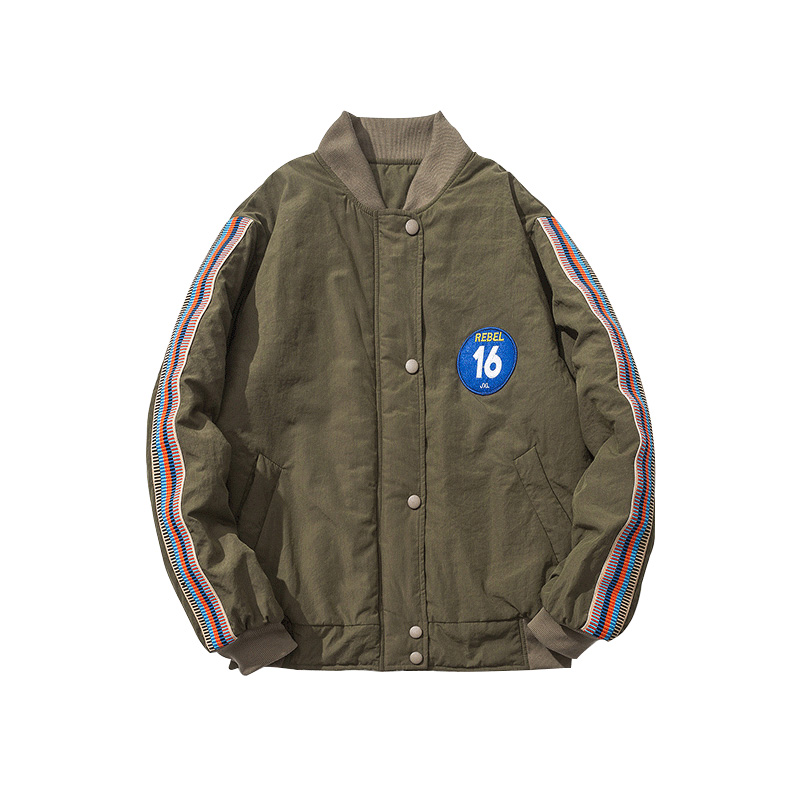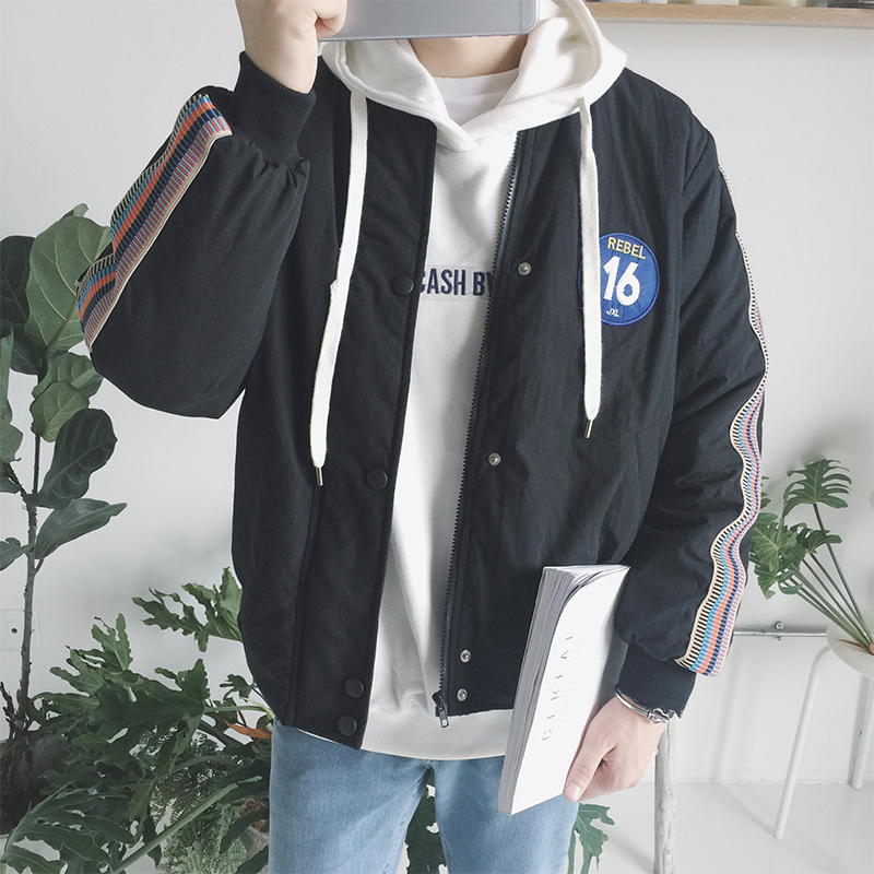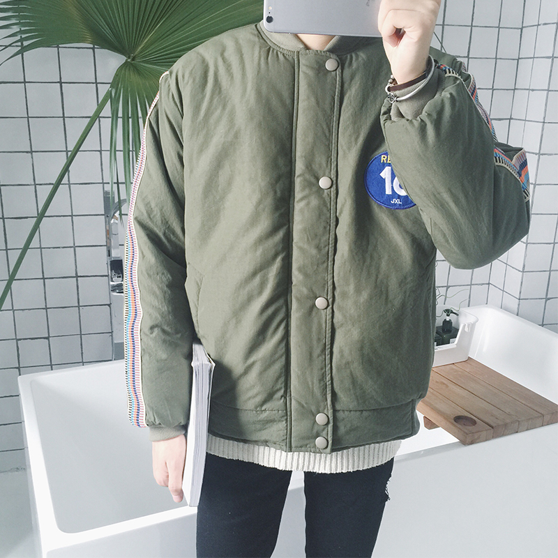 秋冬新款日系棒球領數字寬松男士保暖短款棉衣外套