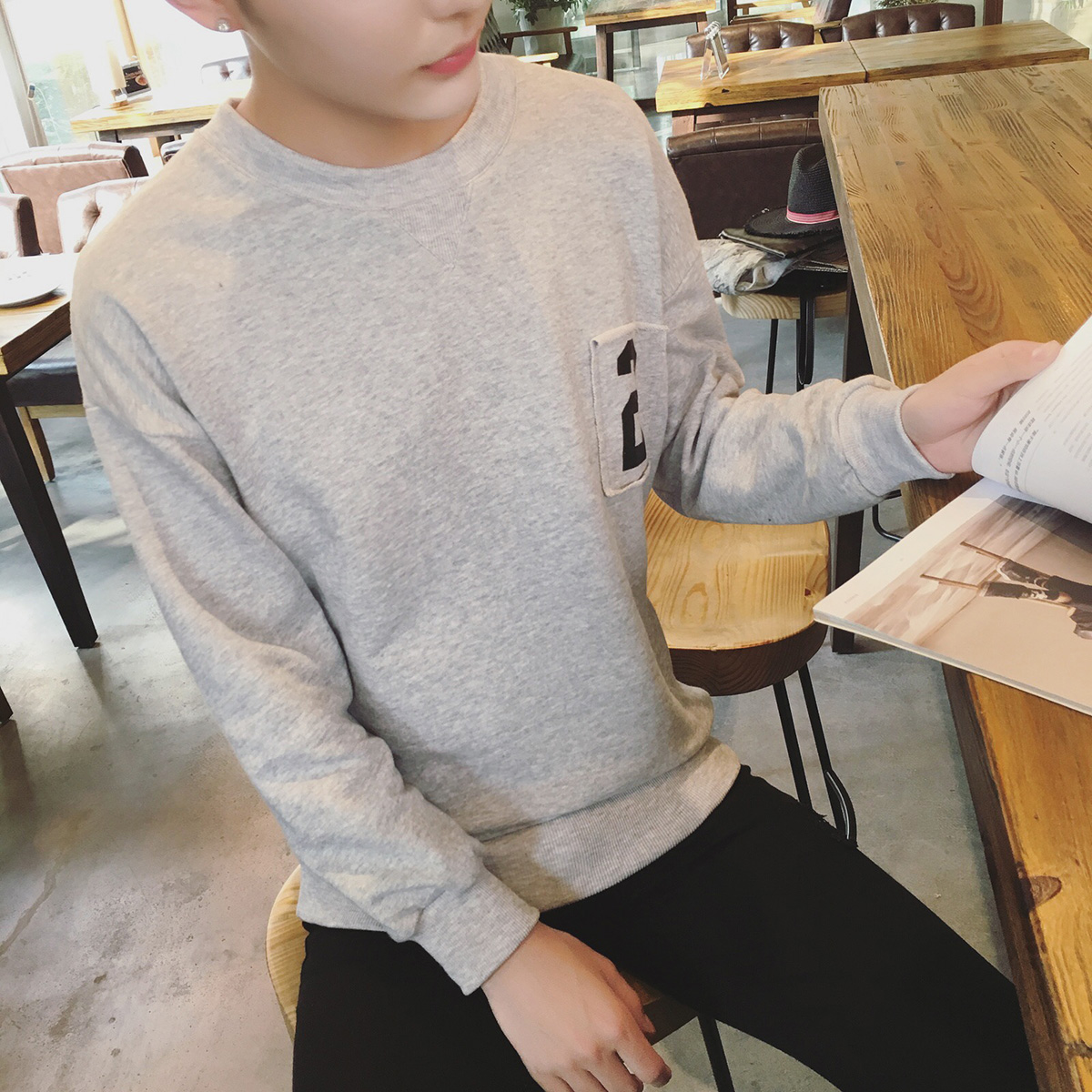 / 秋季新款韓版男長袖外套學生男士圓領印花套頭衛衣
