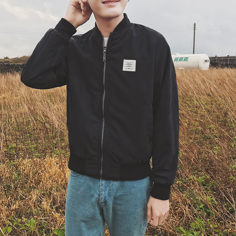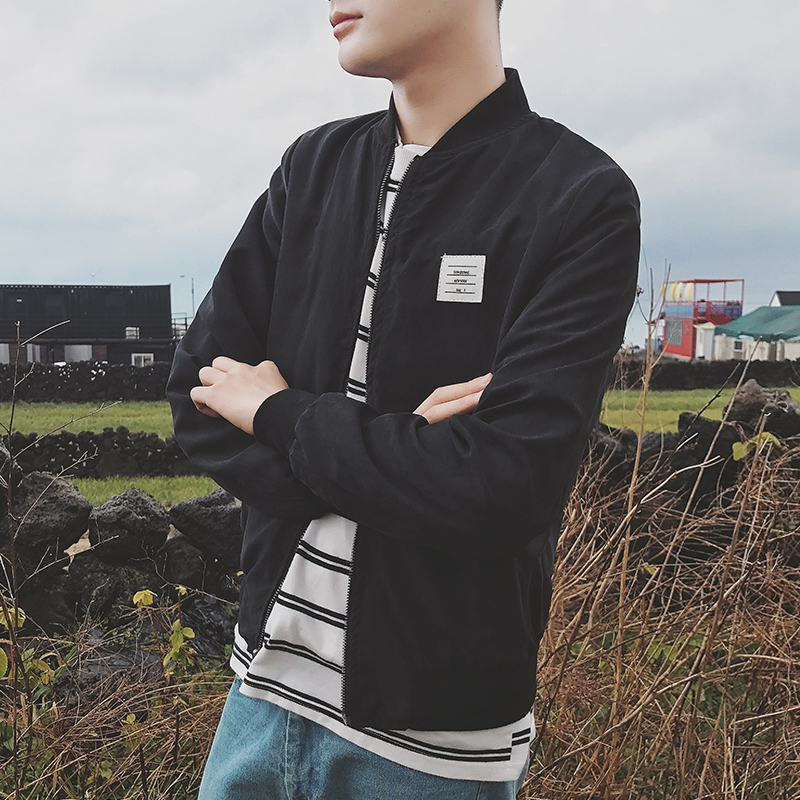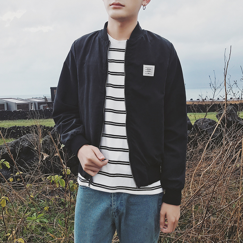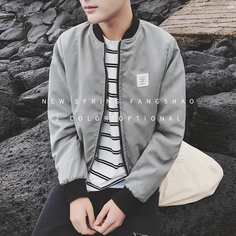 男裝17新款韓版字母簡約棒球領短款男士夾克外套