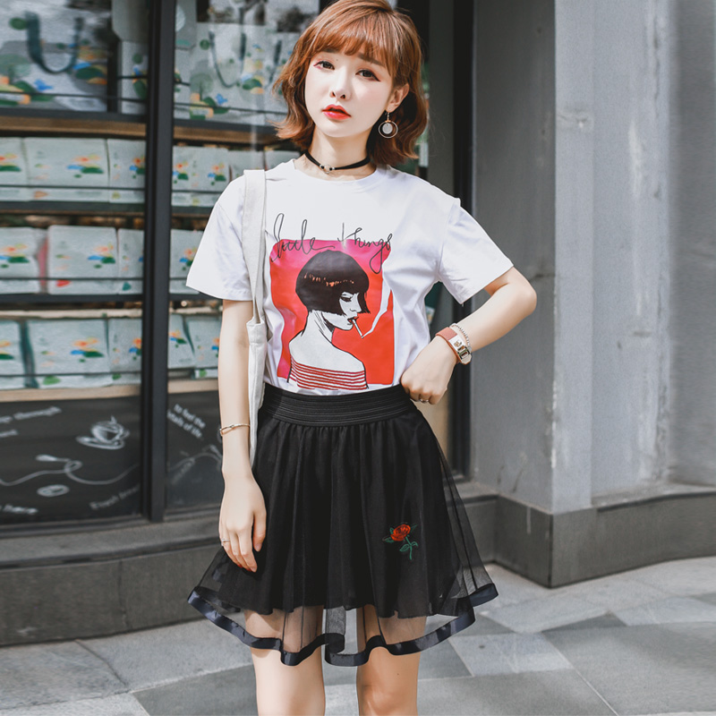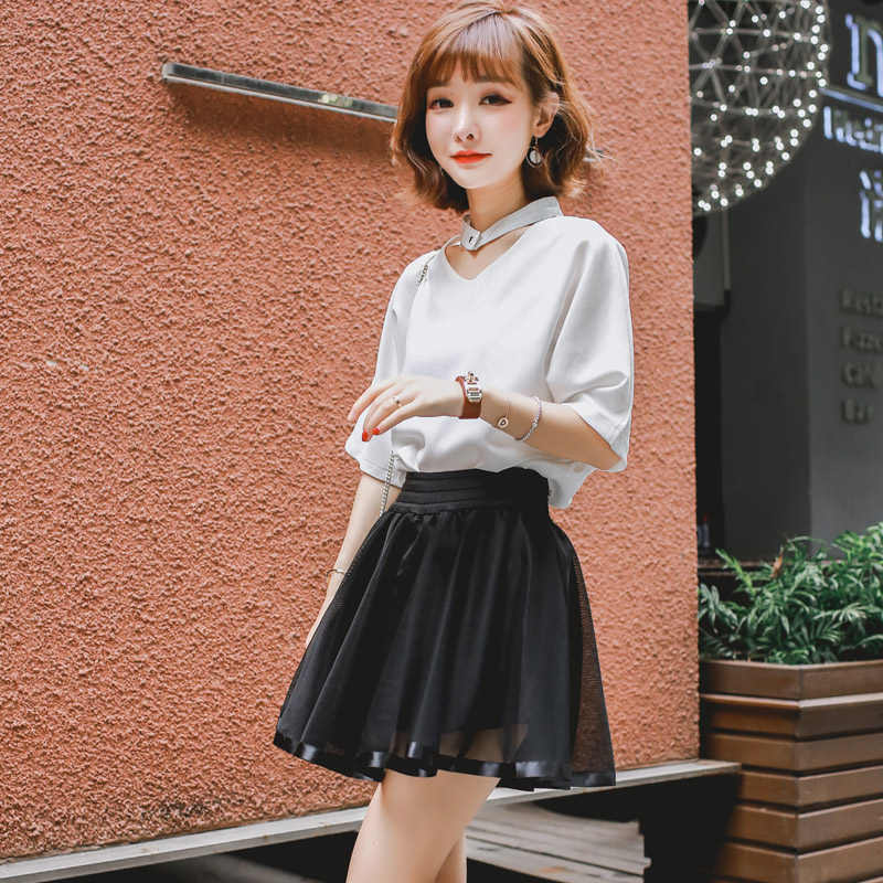 / 夏季新款學院風高腰網紗半身裙傘裙韓版學生蓬蓬裙女褲裙短裙