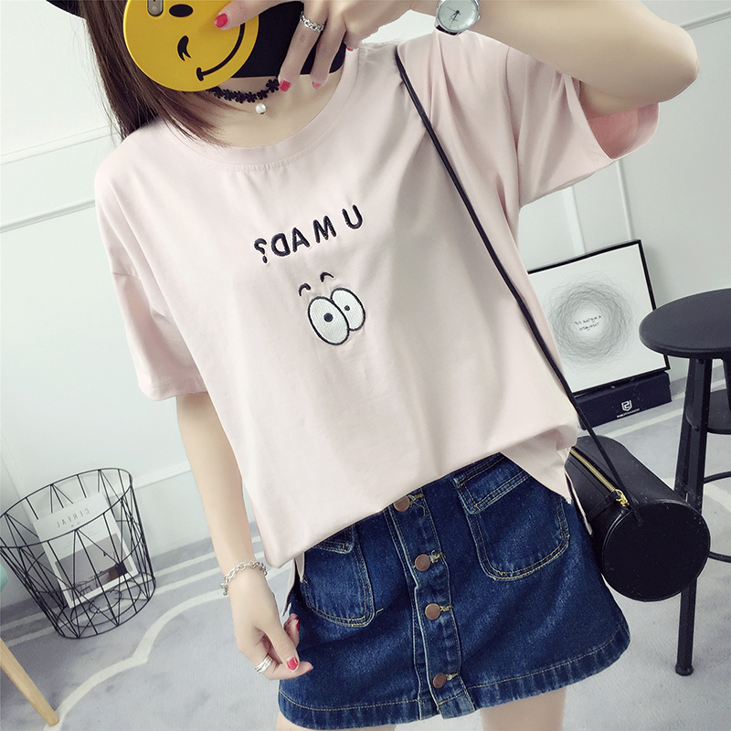 / 字母短袖t恤女夏季韓版百搭新款夏裝衣服寬松顯瘦學生體恤衫
