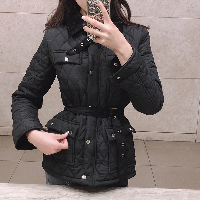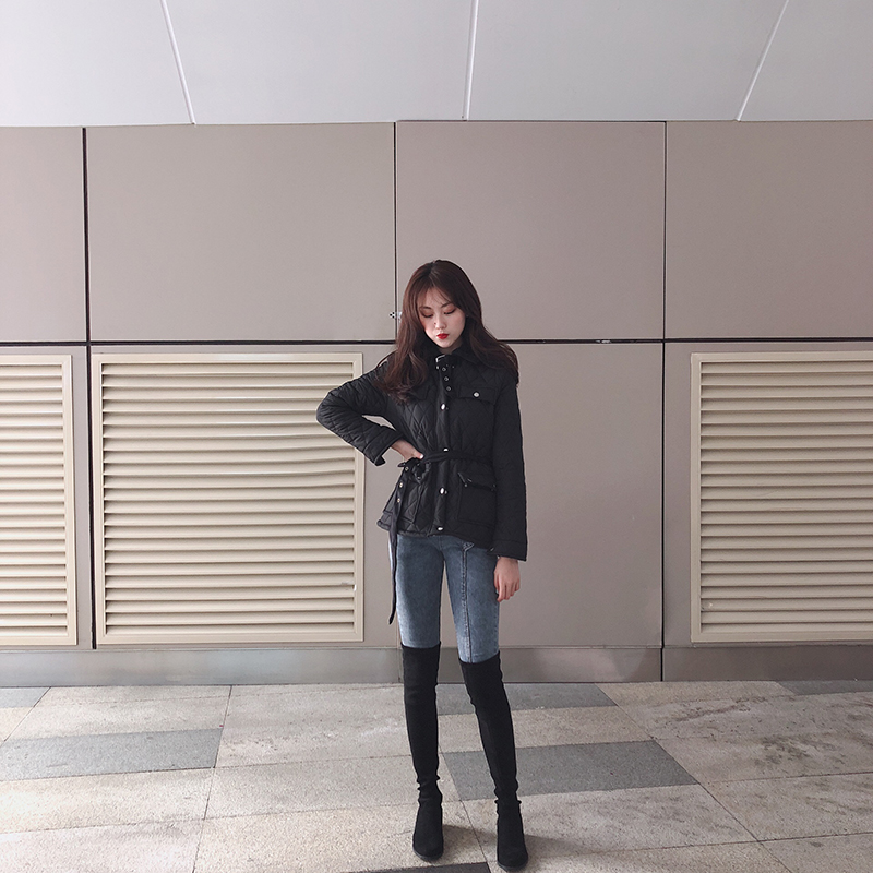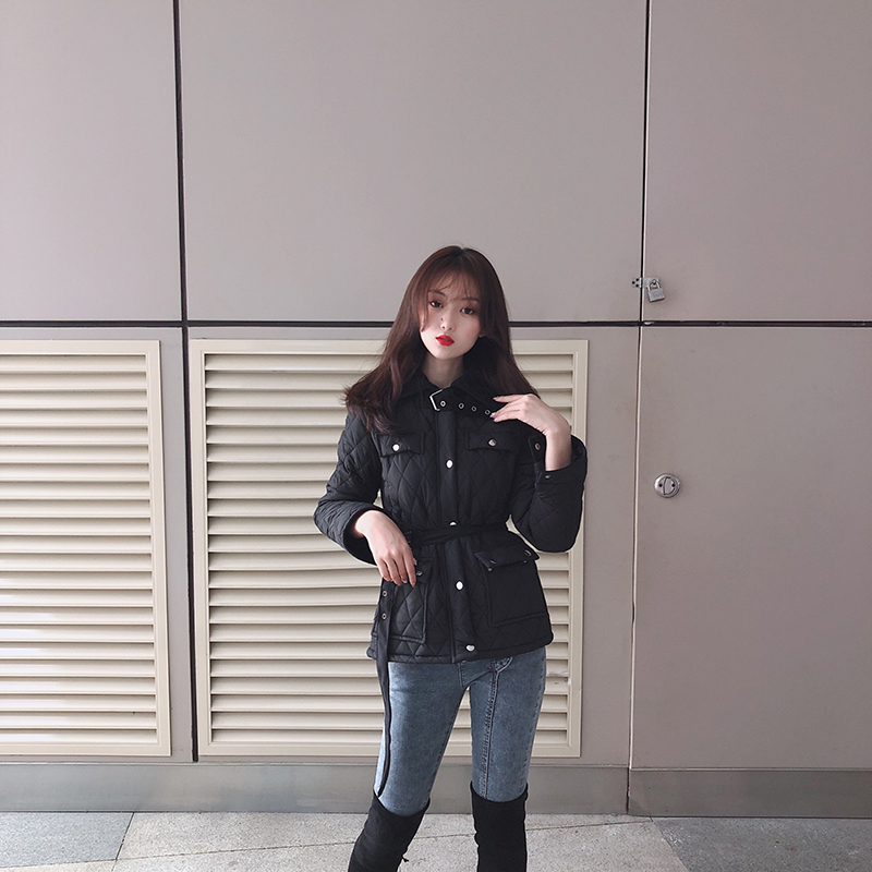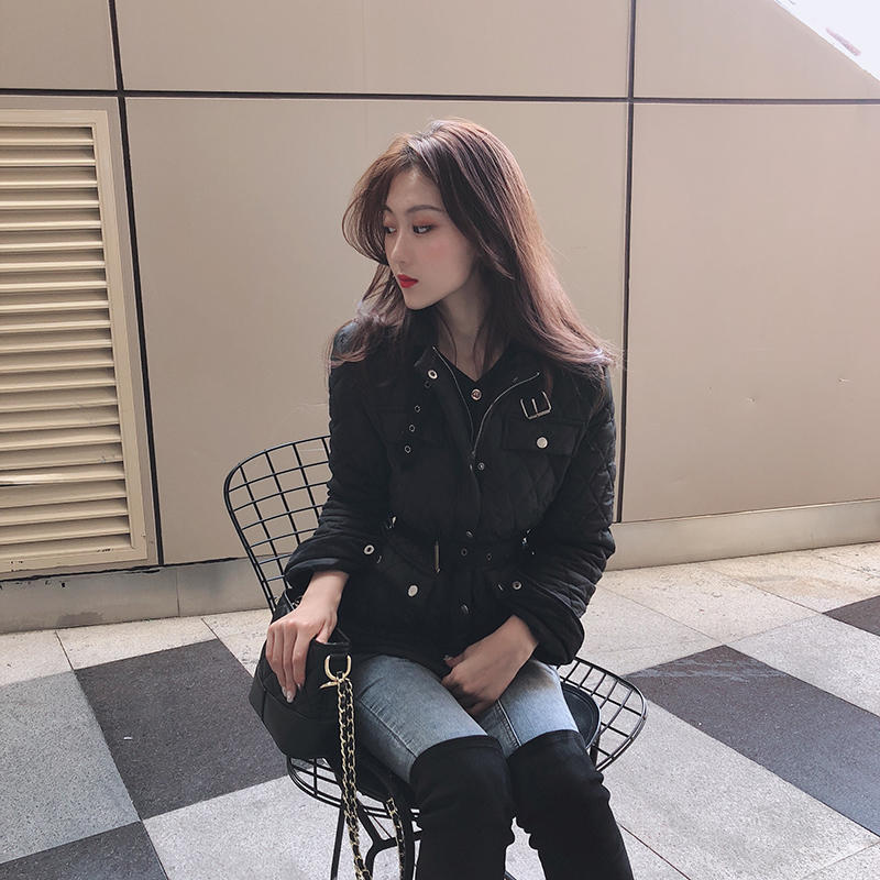 / 2018新款韓版潮流女裝秋冬棉服上衣修身百搭長袖開衫外套配腰帶
