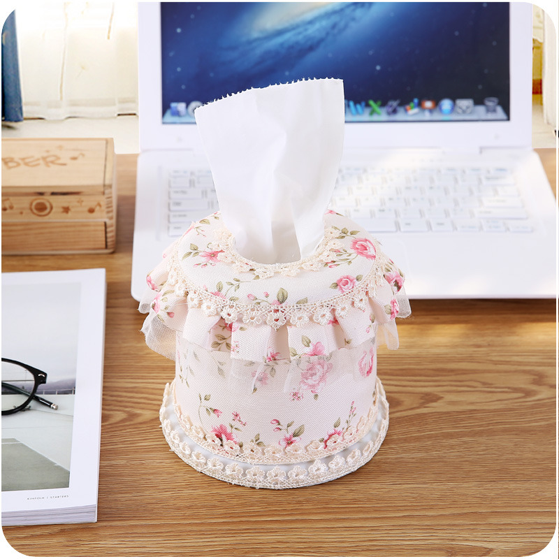 / 新款歐式田園蕾絲布藝紙巾盒環保抽紙盒三件套復古家居車用紙盒抽