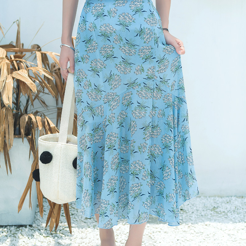 / 夏裝新款韓版女裝荷葉邊雪紡碎花半身裙a字不規則魚尾裙子潮