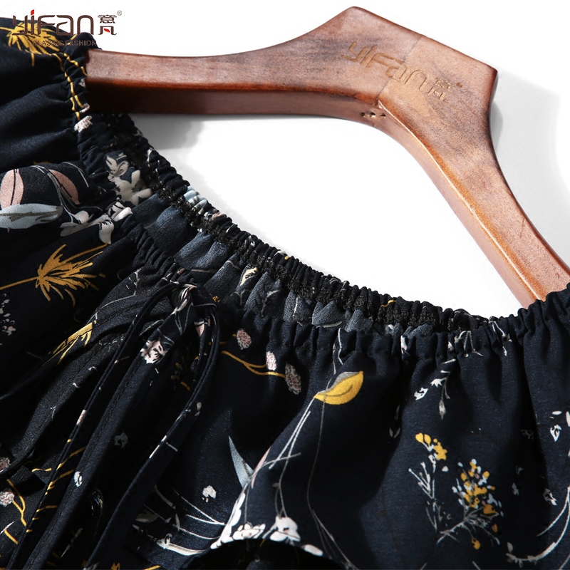 / 春夏季新款韓版復古一字領露肩寬松荷葉邊喇叭袖碎花雪紡衫女上衣