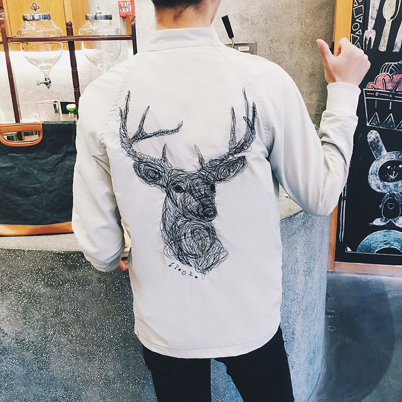 秋裝韓版新款男士大牌鹿頭刺繡小立領夾克潮流外套