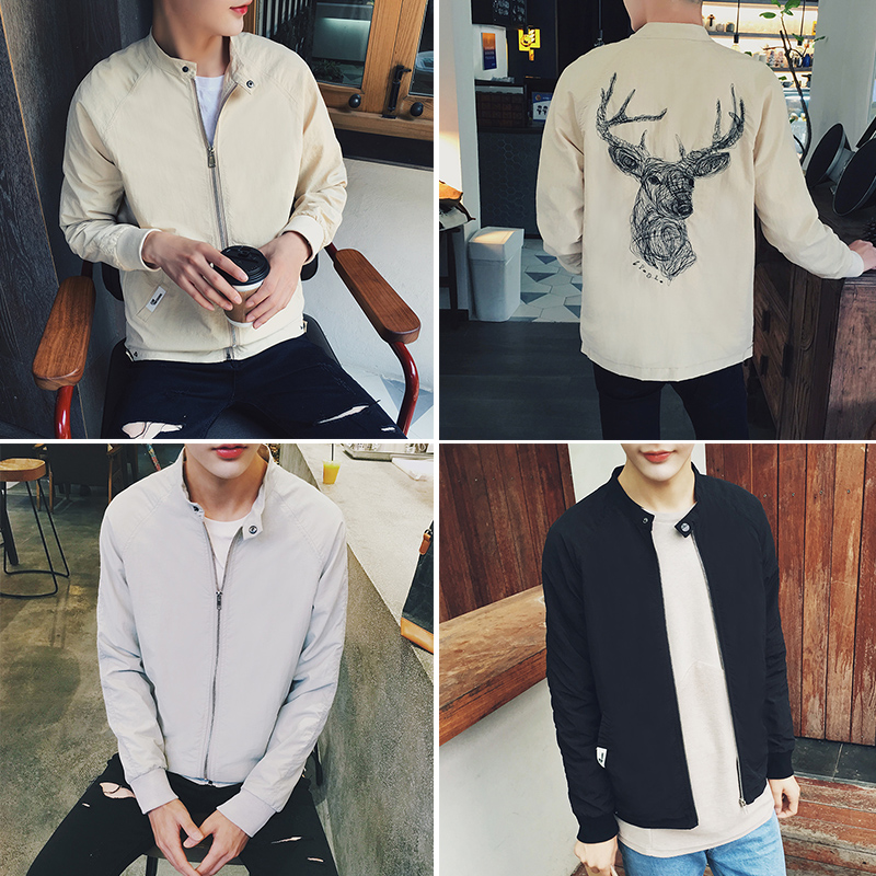 / 秋裝韓版新款男士大牌鹿頭刺繡小立領夾克潮流外套