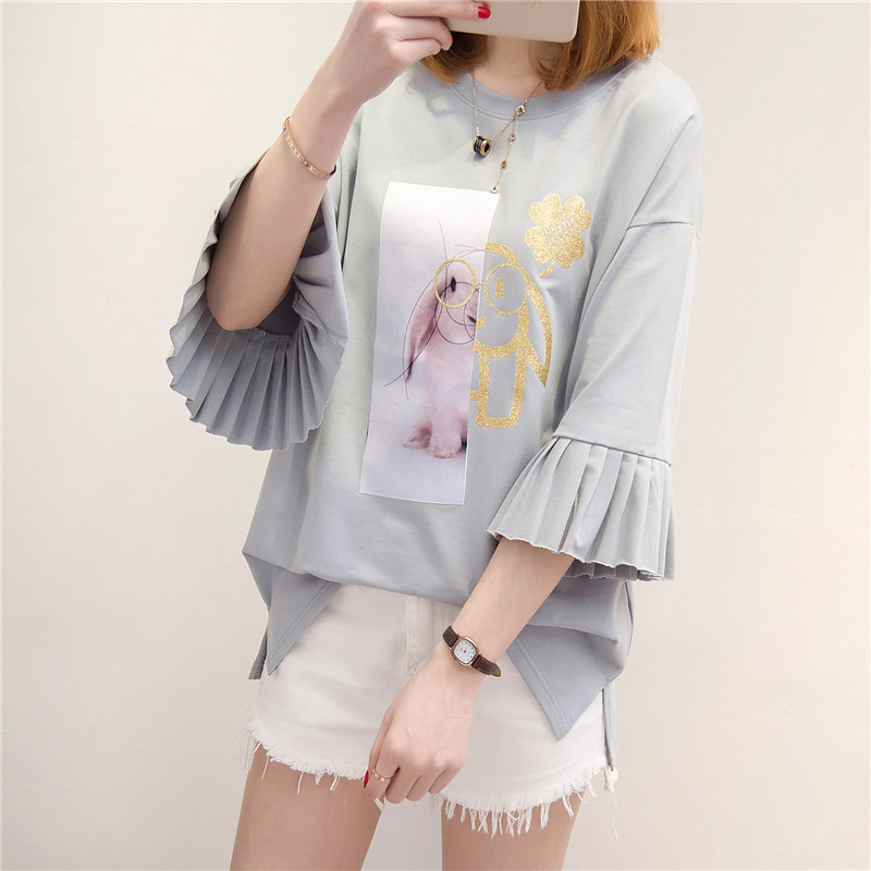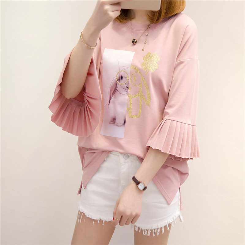 / 夏裝新款女上衣t恤女中長袖半袖韓版短袖打底衫百搭寬松體恤