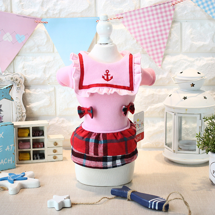 可愛學院風衛衣格子裙~寵物連衣裙泰迪裙