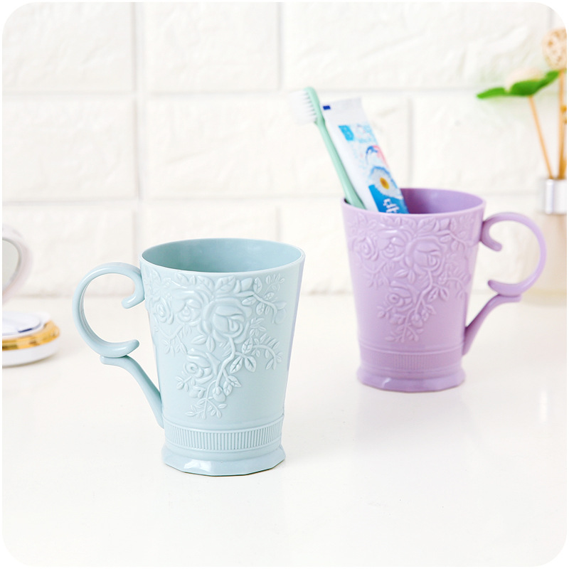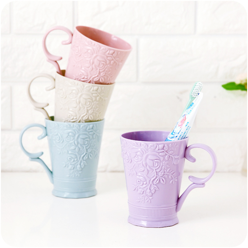 / 牙刷杯子 素色雕花帶手柄漱口情侶牙刷杯創意塑料洗漱刷牙杯男女