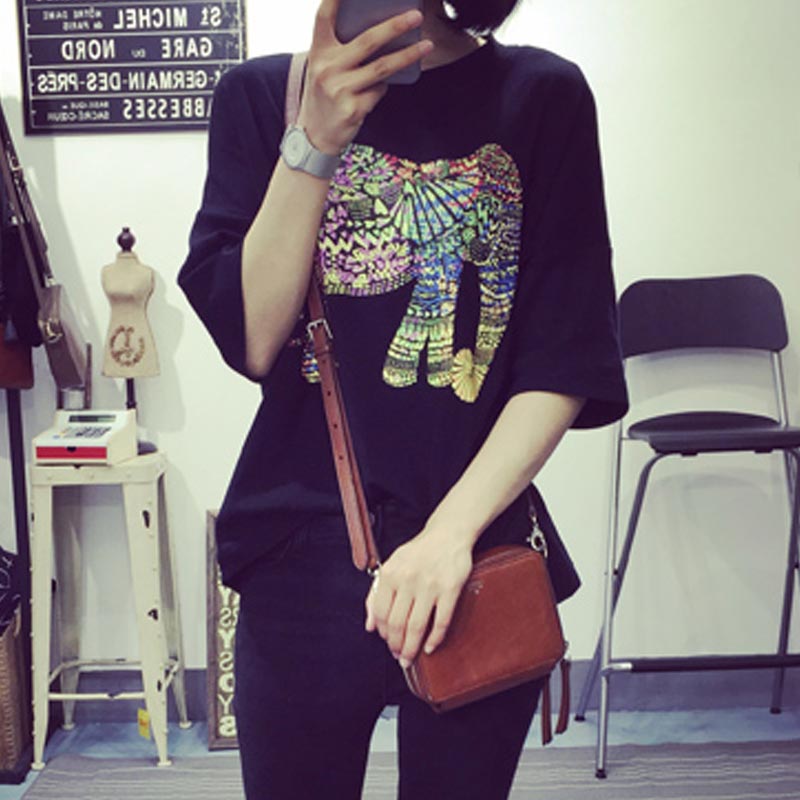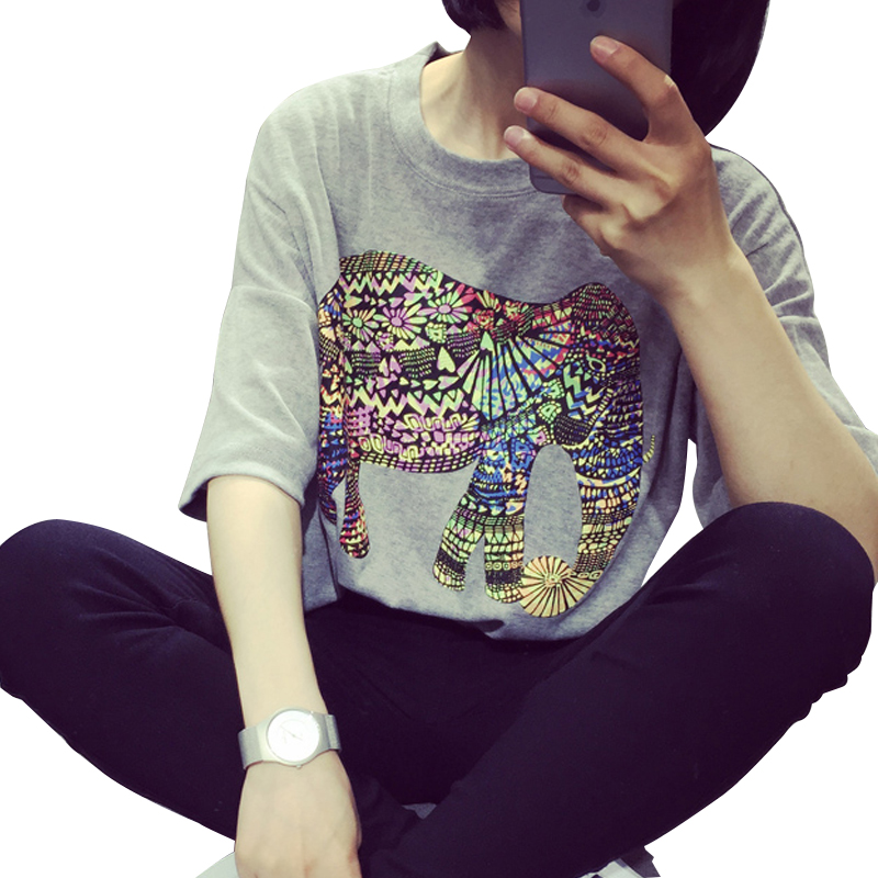 春夏短袖女T恤韓國新款卡通印花圓領打底衫寬松大碼百搭半袖上衣