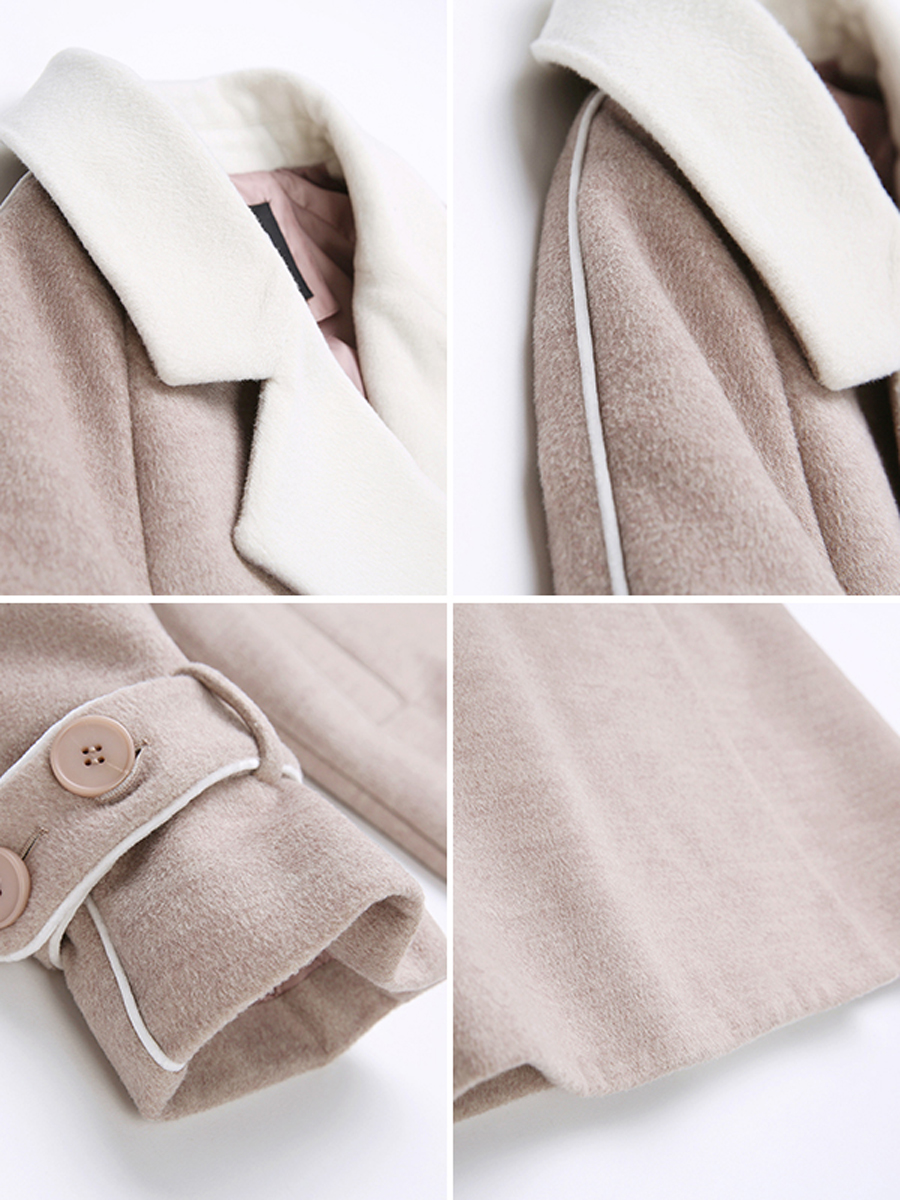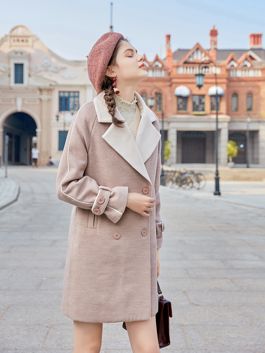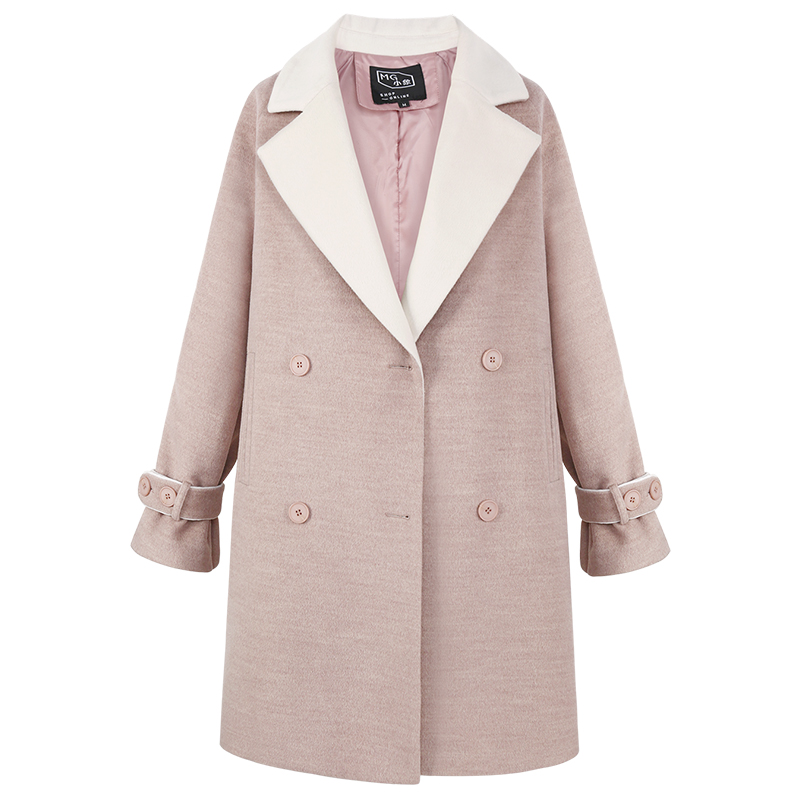 MG小象中長款駝色毛呢外套女冬季2018新款韓版流行雙排扣呢子大衣