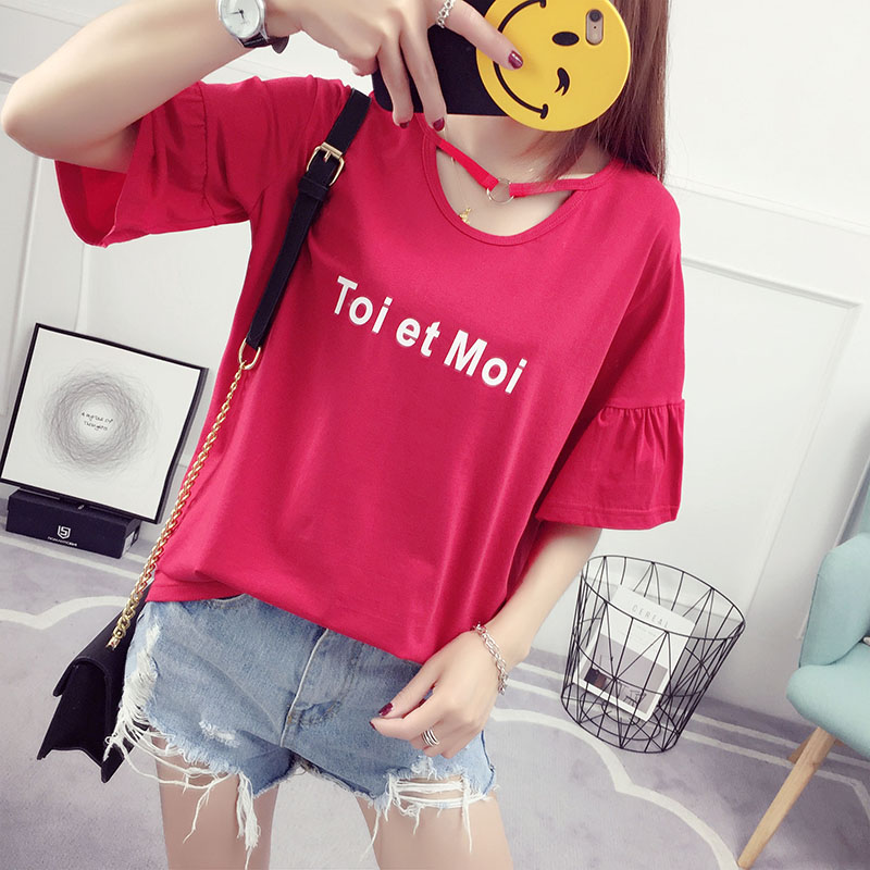 / 喇叭袖t恤短袖上衣女夏裝新款韓版學生百搭寬松夏季體恤衫潮