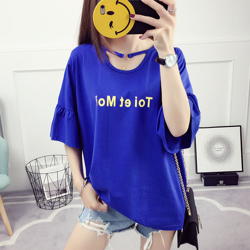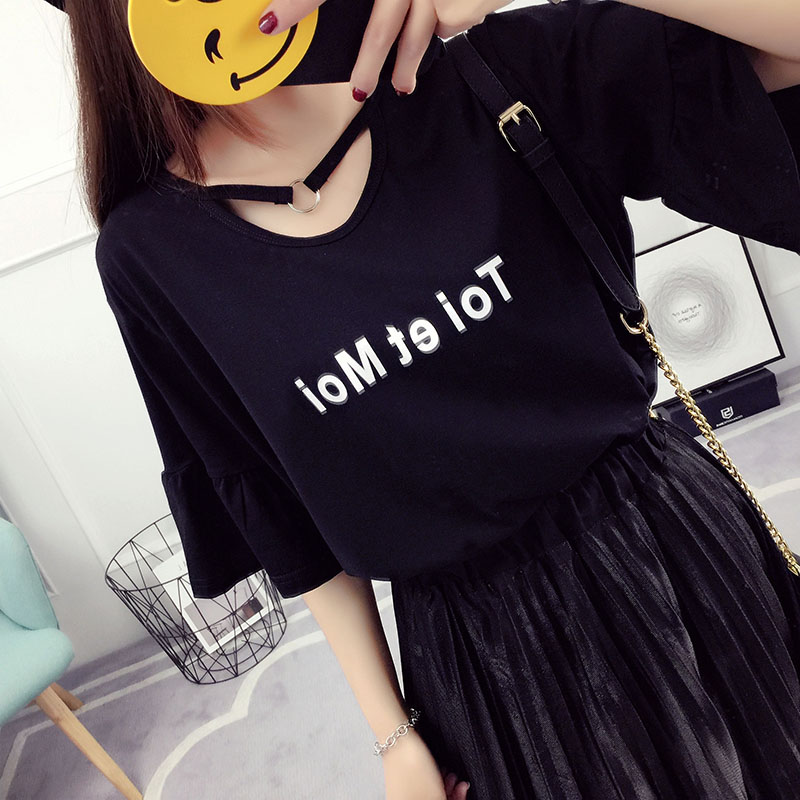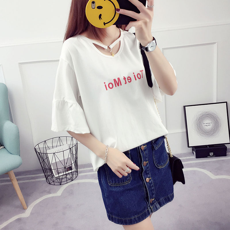 喇叭袖t恤短袖上衣女夏裝新款韓版學生百搭寬松夏季體恤衫潮