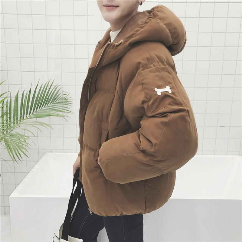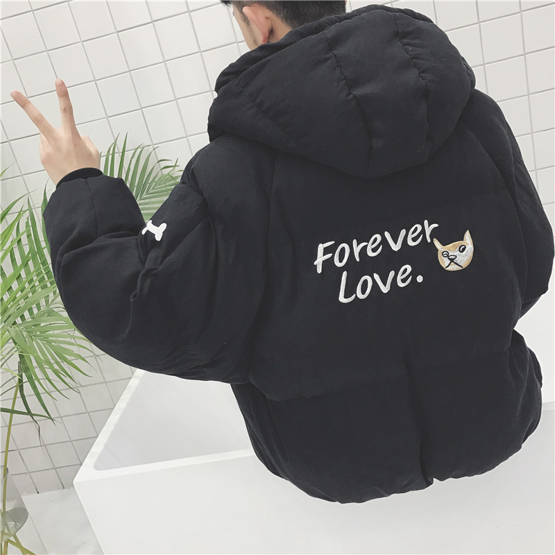 / 男裝港風小狗刺繡字母加厚面包服男士連帽短款棉衣