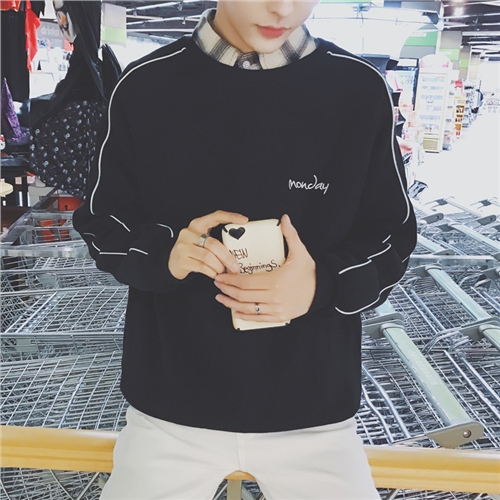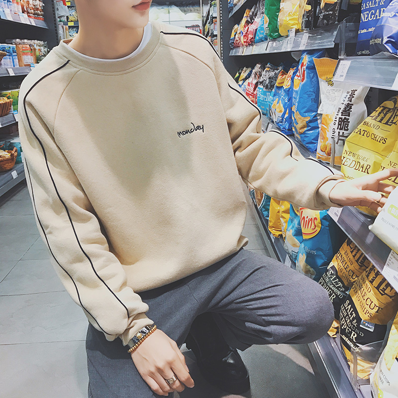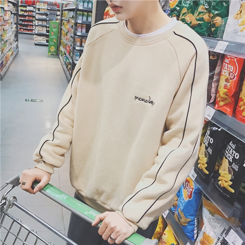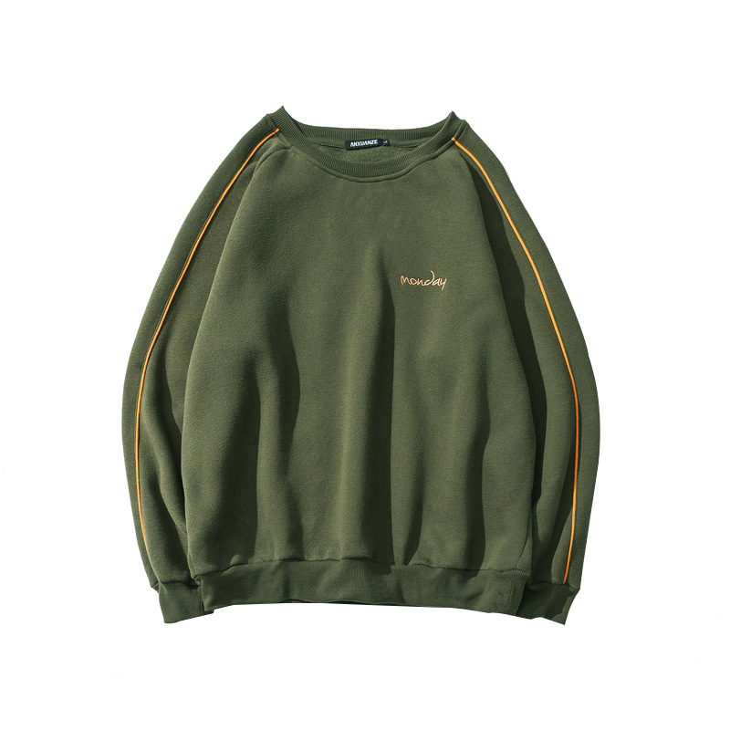 新款冬裝港風文藝袖撞色字母刺繡加絨圓領衛衣外套